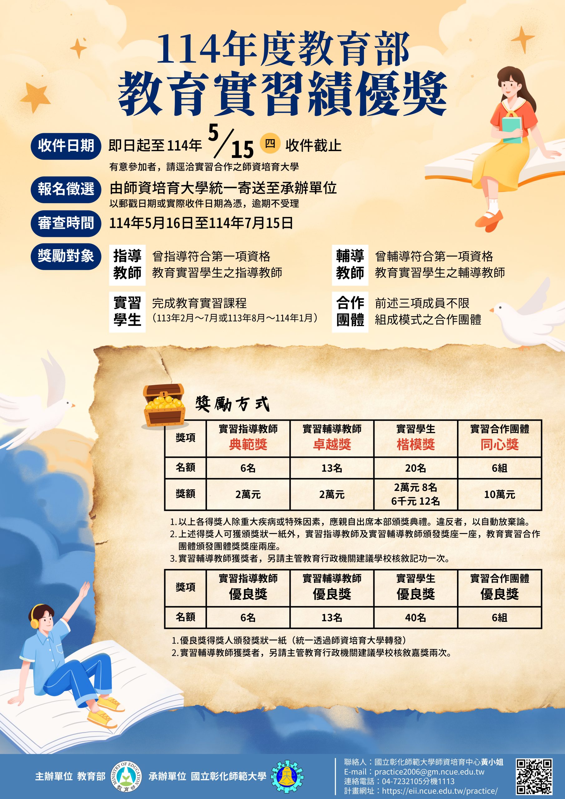 114年度「教育部教育實習績優獎」評選活動 2025-03-13 教育實習績優獎 / 活動公告 114年度「教育部教育實習績優獎」評選活動,請各師資培育之大學、各直轄市政府教育局、縣 (市)政府積極宣導並踴躍推薦符合資格者參與。 公文 教育部教育實習績優獎及獎勵要點 114年教育實習績優獎參賽資料格式 以下是為了能夠滿足段落所需的長度而定義的無意義內文,請自行參酌編排。 You Might Also Like 108年度「教育部教育實習績優獎」評選活動宣導 2021-01-20 師資培育中心「2021雙語與AI數位教學學術研討會」線上研討會連結 2021-12-23 109年度「教育部教育實習績優獎」評選活動 2021-01-18